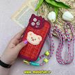 نوع محصول: قاب سیلیکونی پارچه ای خرسی تدی محافظ لنزدار دارای بند کنفی بلند قرمز